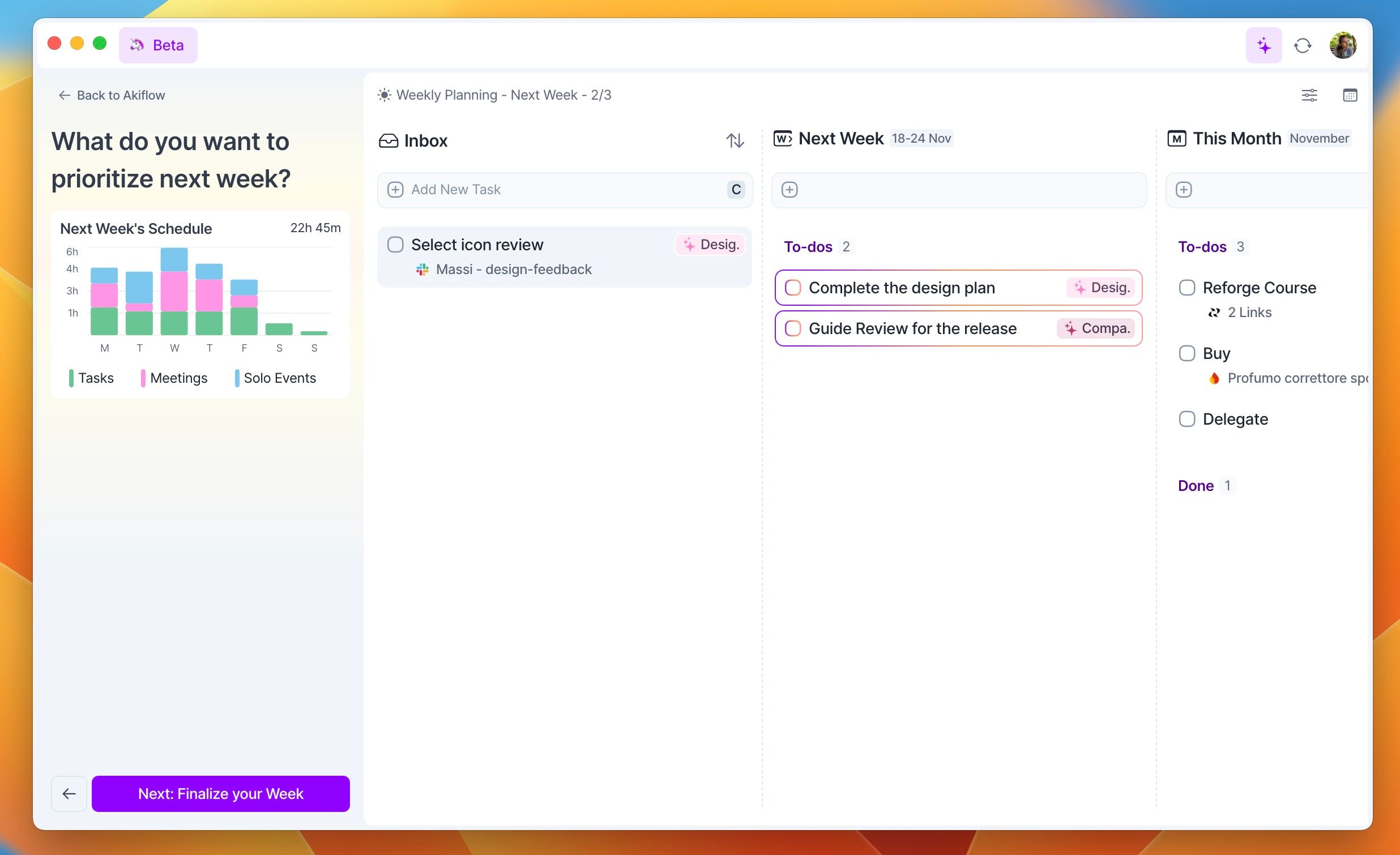 Akiflow guides you through all of that with Goal management, Day Rating, Reflection, and more!
